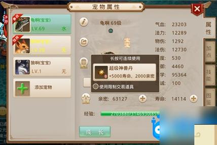 宠物类型直接决定了可学习的高阶心法数量。普通宠物仅能学习2个高阶心法,变异宠物可解锁3个,而元灵、神兽等稀有宠物则能达到5-6个。物攻型宝宝(如龙、虎)需优先选择力系心法,例如乘胜追击可在主目标死亡后