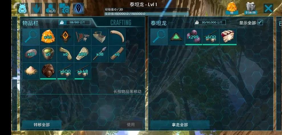 驯服前的准备工作是核心环节。玩家需达到85级并制作泰坦龙平台鞍,同时储备至少100发火炮子弹及50发火箭筒炮弹(后者用于辅助攻击)。由于泰坦龙眩晕值高达3万,材料不足会导致中途失败,因此建议额外多备2